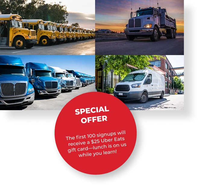 Seats are limited, and the Uber Eats offer is only available to the first 100 signups. Don’t wait, secure your spot now and take the first step toward a safer, smarter fleet.